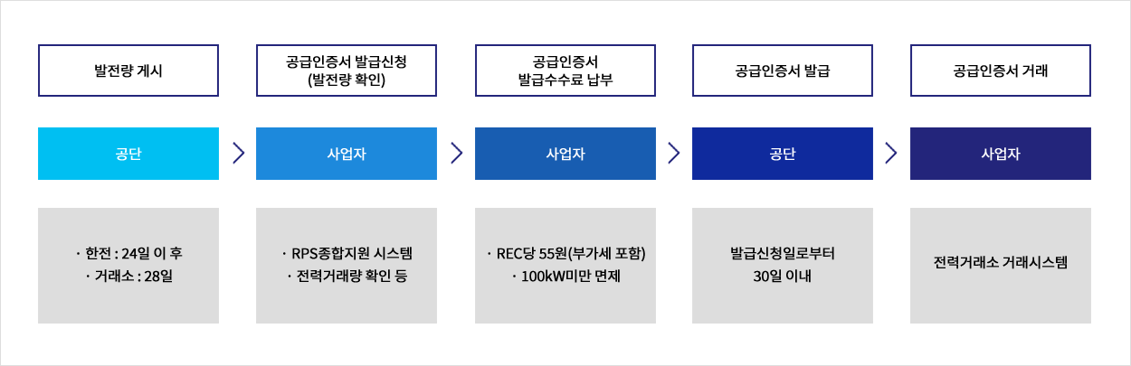 REC 발급신청은 RPS종합지원시스템에서 온라인 신청하며 신청기한은 전력공급일이 속한 달의 말일로부터 90일 (기한내에 발급신청을 완료하지 않는 경우 기한일 익일 자동 말소)