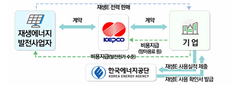 · 한전 중개로 전기소비자와 재생에너지 발전사업자 간 전력구매계약(PPA)을 체결하여 재생에너지전력을 구매