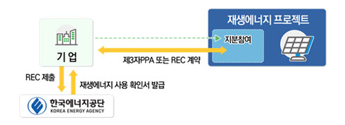· 전기소비자가 재생에너지 발전사업에 일정 지분을 투자하고, 해당 발전사와 제3자 PPA 또는 REC 계약을 별도로 체결